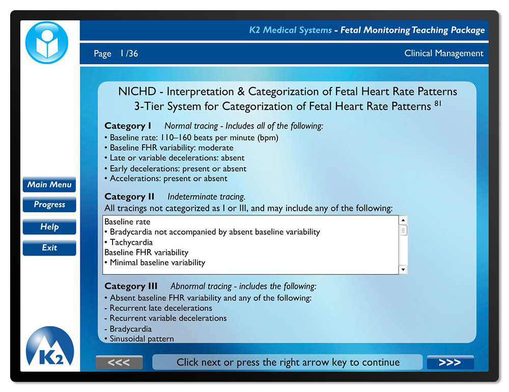 The K2 Fetal Monitoring Training System is a computer based training system that can be accessed over the internet, anywhere, anytime.